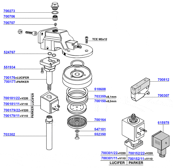 3-way PARKER solenoid valve 220v 50/60 (complete)