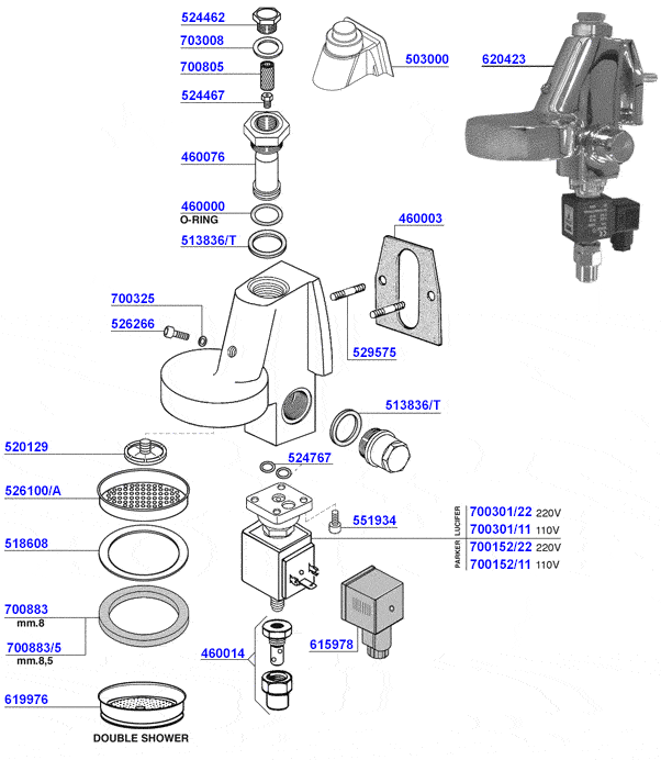 3-way PARKER solenoid valve 220v 50/60 (complete)