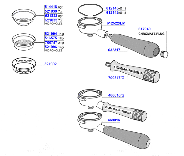 Portafilter body 3/8 inch bsp - m12 handle thread