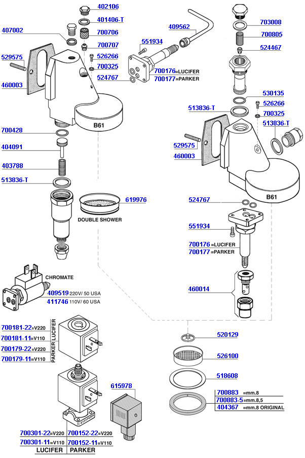 3-way PARKER solenoid valve 220v 50/60 (complete)