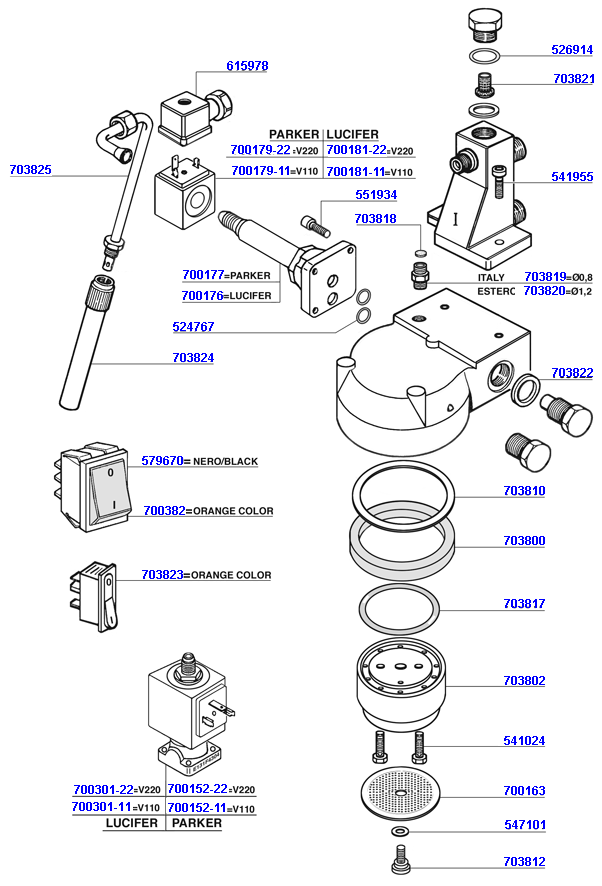3-way PARKER solenoid valve 220v 50/60 (complete)