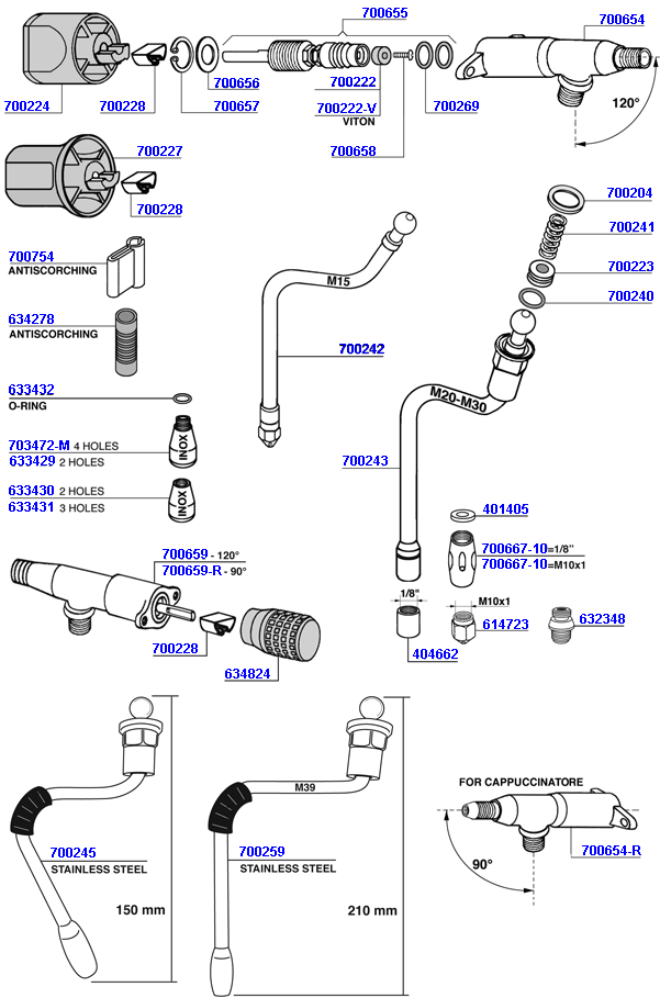 Steam nozzle 4-holes 1/8 inch bsp (10mm female thread)