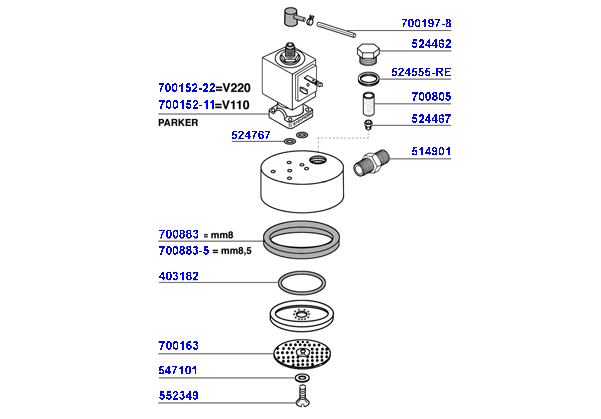 3-way PARKER solenoid valve 220v 50/60 (complete)