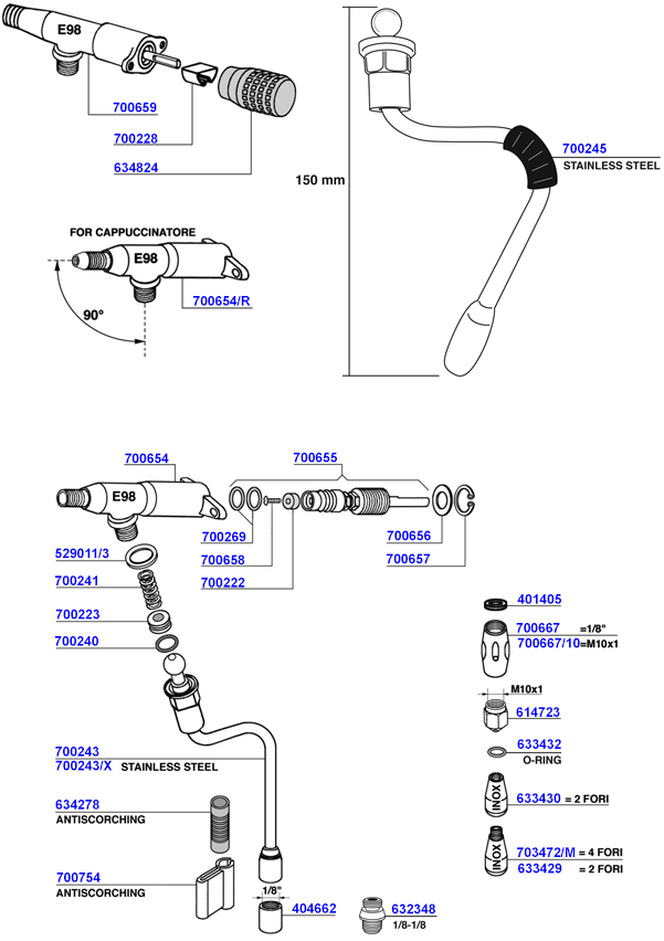 Steam nozzle 4-holes 1/8 inch bsp (10mm female thread)