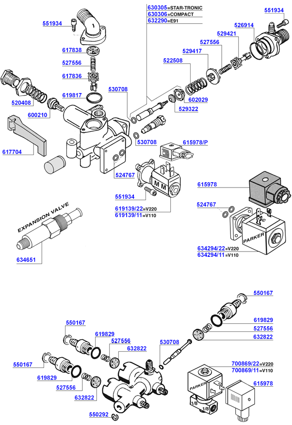 2-way PARKER solenoid valve 220v 50/60 (complete)