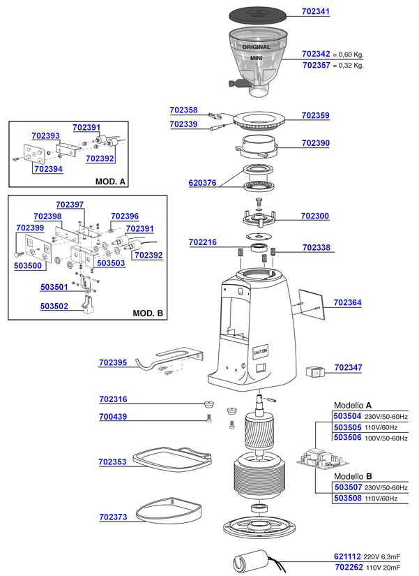 Mazzer Mini - Lux D Hopper Ø 57/59.5mm - Original | 320g