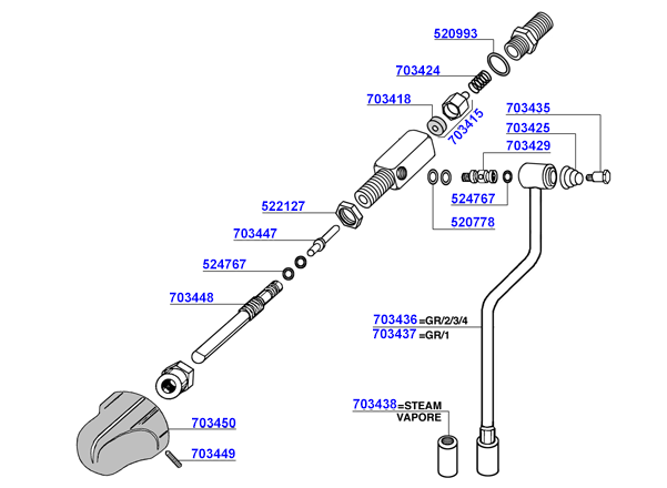 NS - Steam and hot water valves 4 PARTS TO FIT NUOVA SIMONELLI COFFEE MACHINES