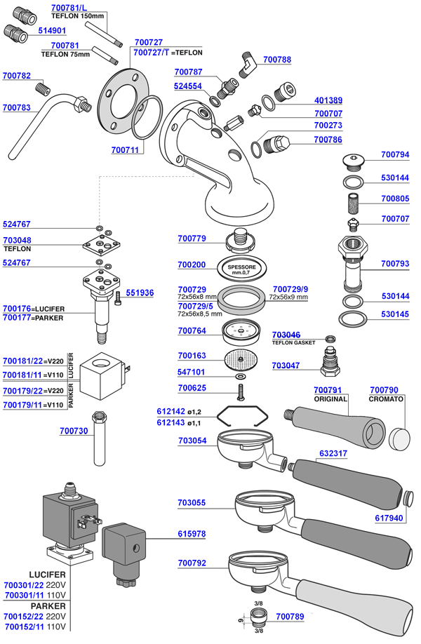 San Marino - New model group head and portafilters PARTS TO FIT SAN MARINO COFFEE MACHINES