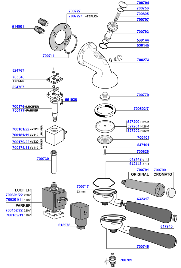 San Marino - Greenline group head and portafilters PARTS TO FIT SAN MARINO COFFEE MACHINES