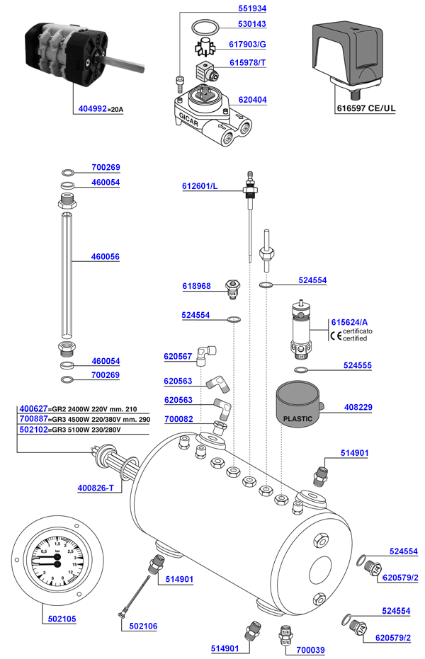 Sirai pressurestat 1/4 inch bsp 3 pole 0.5 - 1.4 bar