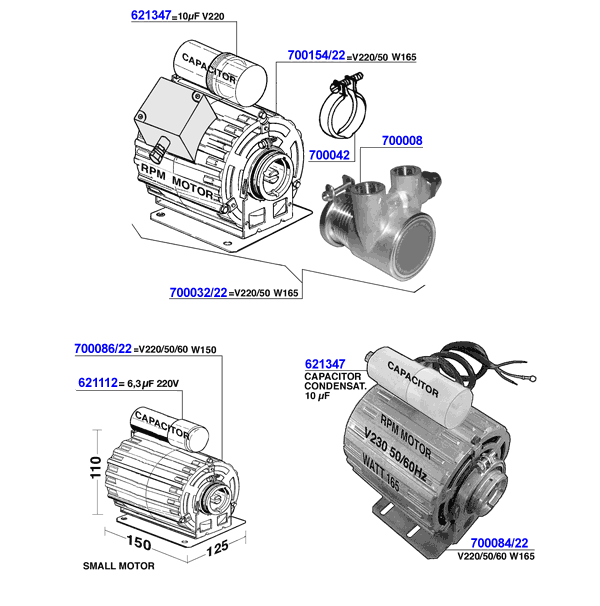 Small pump motor 150w 230v - 50/60hz Capacitor 6mF