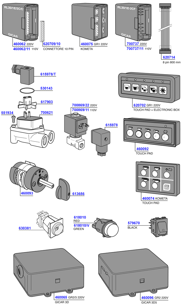 Touch Pad "Gicar" 5 Chromed Buttons - 1LED Vbm 8 Pin (9.9.07.92g)