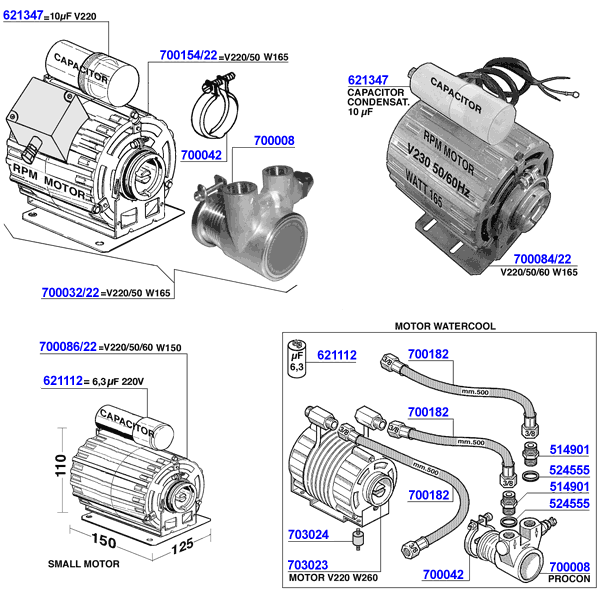 Small pump motor 150w 230v - 50/60hz Capacitor 6mF